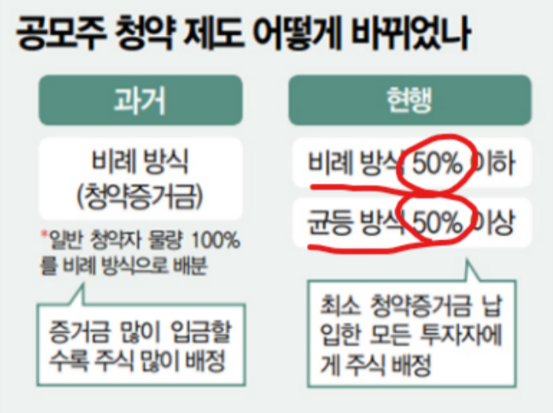 공모주 청약 제도가 바뀌었습니다. 과거에는 비례방식으로 일반 청약자 물량의 100%를 비례방식으로 배분했기 때문에 증거금을 많이 입금할수록 무조건 유리한 구조 였습니다. 하지만, 변경된 공모주 청약방식은 50%는 비례방식, 50%는 균등방식으로 진행하기 때문에 무조건 증거금을 많이 입금한다고 해서 많은 수의 주식을 받을 수 있는 것은 압니다. 전략적인 접근이 필요합니다. 위의 설명처럼 증권사별로 배정방식 및 물량이 상이하기 때문에 어떤 증권사를 선택하느냐가 굉장히 중요한데요. 어떤 증권사는 내가 선택할 수 있어야 하기 때문에 사전에 계좌개설이 필요합니다.