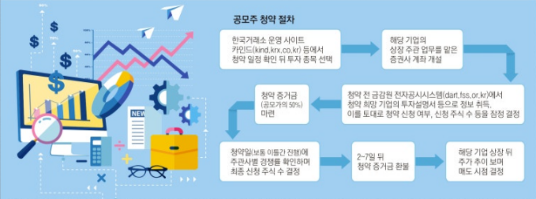 공모주 청약이란 주식시장에 신규 상장하는 기업의 주식을 배정받기 위해 증권사 계좌에 청약 증거금을 넣고 신청하는 것을 의미합니다. 공모주 청약 일정을 꼼꼼히 정리해서 꾸준히 참여만 하더라도 괜찮은 수준의 부수입을 얻을 수 도 있을텐데요. 아직 공모주 청약에 대해 모르시는 분들을 위해 공모주 청약방법에 대해 상세히 알려드리겠습니다.