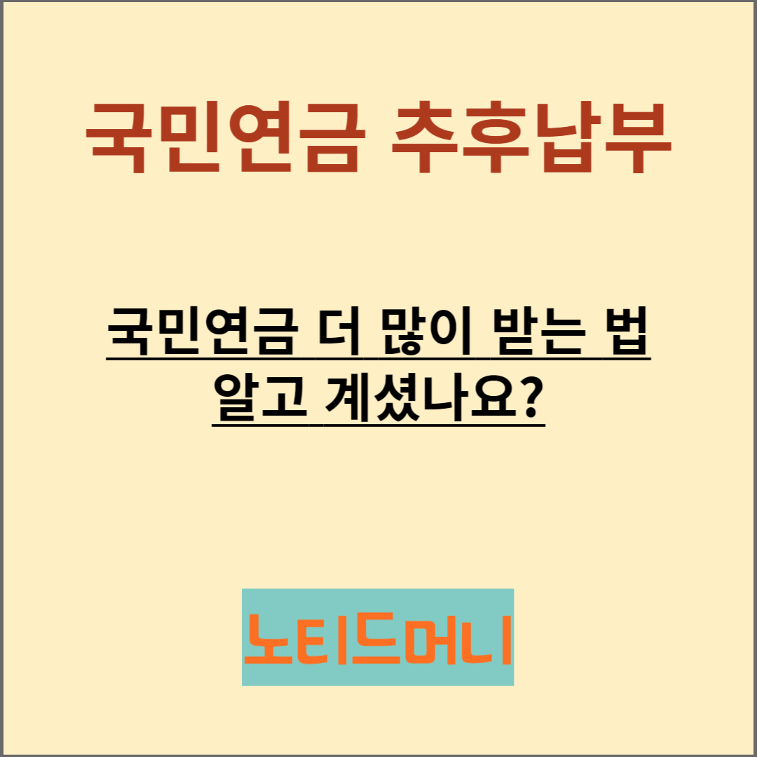 국민연금은 가입 기간이 길고, 납입 금액이 클수록 더 많은 연금을 받을 수 있는 구조로 되어 있습니다. 이는 매우 당연한 사실입니다. 그러나 약간의 노력을 더하면 더 많은 국민연금을 받을 수 있는 몇 가지 방법이 있습니다. 이번에는 국민연금 많이 받는 법, 그 첫번째로 국민연금 추후납부 제도에 대해 상세히 알아보겠습니다.