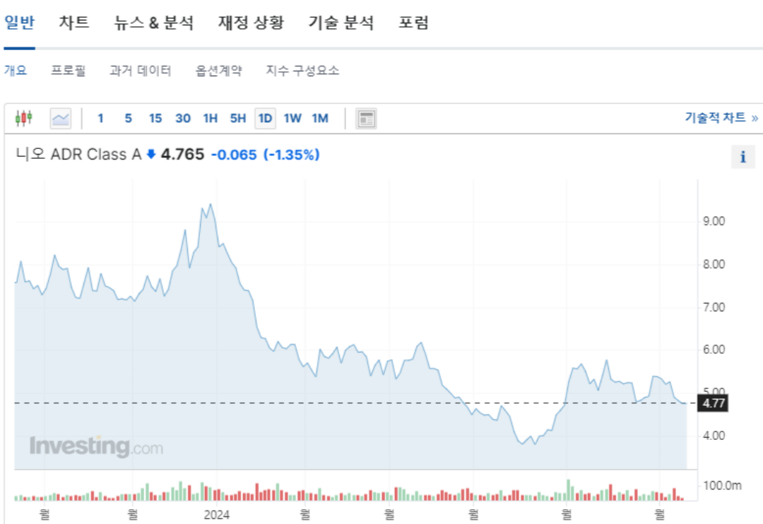 니오는 중국의 대표적인 전기차 제조업체로, 고급 전기차 시장에서 빠르게 성장하고 있습니다. 니오는 혁신적인 배터리 교체 서비스와 자율 주행 기술을 통해 차별화된 서비스를 제공하고 있으며, 중국 정부의 강력한 전기차 지원 정책 덕분에 큰 성장 잠재력을 가지고 있습니다. 중국은 세계 최대의 전기차 시장으로, 니오의 성장은 글로벌 전기차 시장의 중요한 지표 중 하나입니다.
