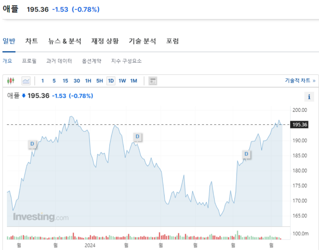 애플은 글로벌 기술 산업을 선도하는 기업으로, 아이폰, 아이패드, 맥북 등 다양한 혁신적인 제품을 보유하고 있습니다. 특히 서비스 부문(애플 뮤직, 애플 TV+, 애플 아케이드 등)의 성장세가 두드러지고 있으며, 안정적인 수익성을 자랑합니다. 강력한 브랜드 가치와 고객 충성도 덕분에 애플은 장기적인 성장 가능성이 높습니다.