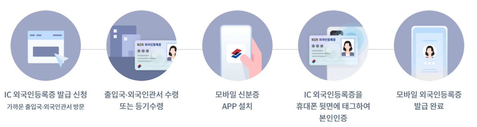 전자칩이 내장된 신형 외국인등록증을 이미 가지고 계신 분들은 모바일신분증 앱을 통해 더욱 간편하게 모바일 외국인등록증을 발급받을 수 있으니 참고하시면 좋을 것 같아요.