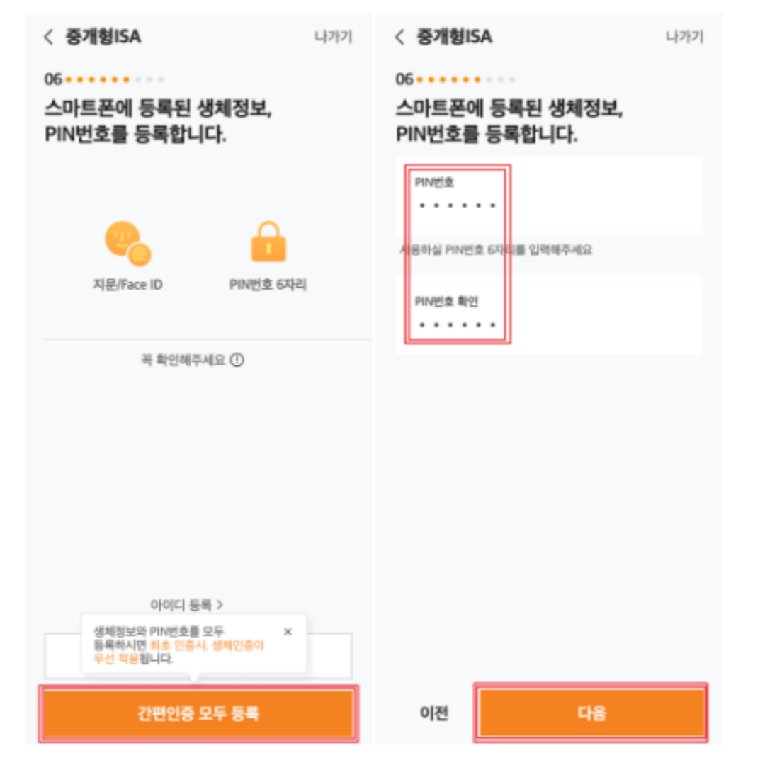 ISA 계좌 만드는 법 5. 생체정보 및 PIN 번호 등록