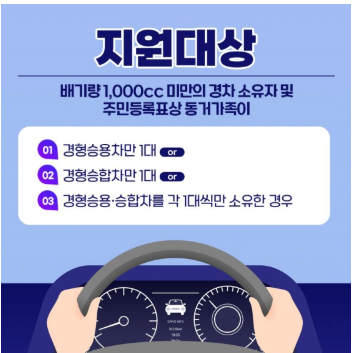 환급 대상 차량은 배기량 1,000cc 미만의 경차 승용차 또는 경차 승합차예요. 한 세대당 경차 승용차 1대 또는 경차 승합차 1대를 소유해야 하지만, 두 종류를 각각 1대씩 소유한 경우에는 각각 혜택을 받을 수 있다는 점도 기억해 두세요. 예를 들어, 모닝과 다마스를 한 세대가 각각 한 대씩 소유하고 있다면 두 차량 모두에 대해 유류세 환급을 신청할 수 있는 거죠.