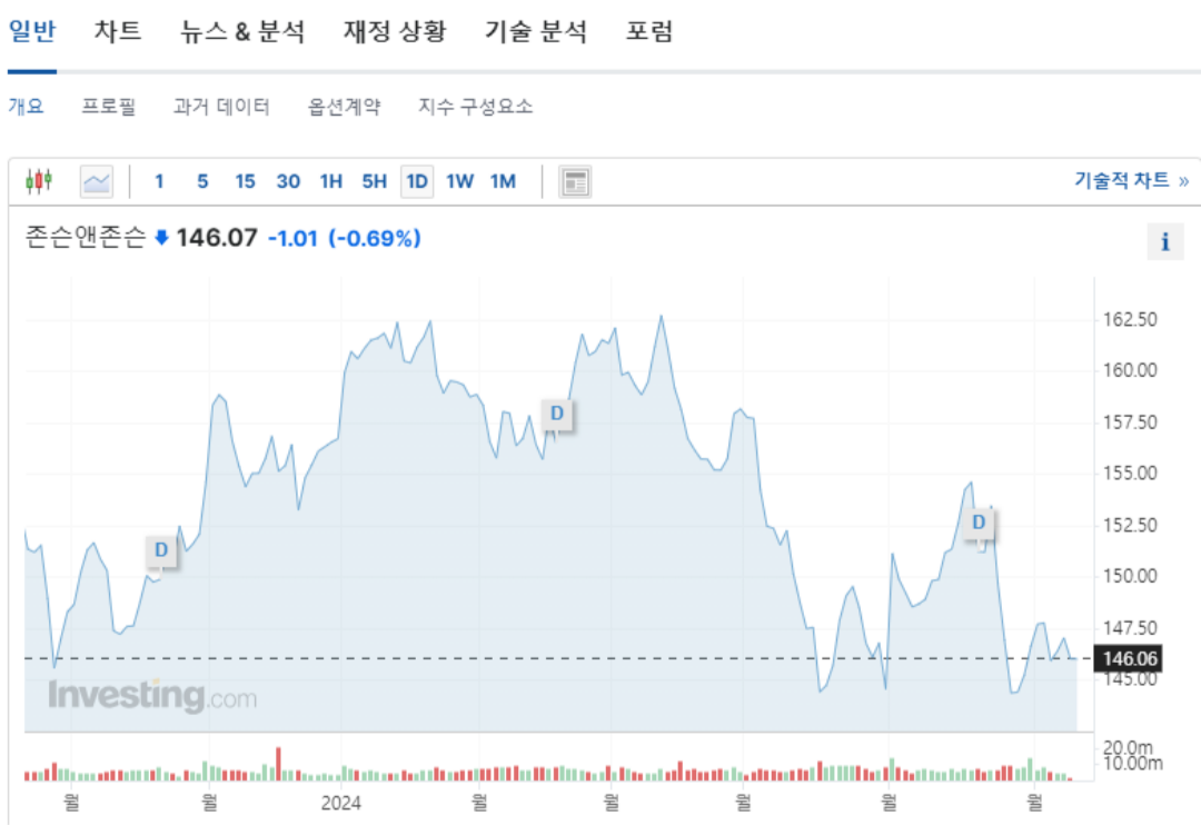 존슨앤존슨은 헬스케어 분야에서 가장 안정적이고 신뢰할 수 있는 기업 중 하나입니다. 제약, 의료기기, 소비자 건강 제품 등 다양한 포트폴리오를 보유하고 있으며, 글로벌 시장에서 강력한 입지를 가지고 있습니다. 특히 장기적인 배당 성장 기록이 투자자들에게 매력적입니다.