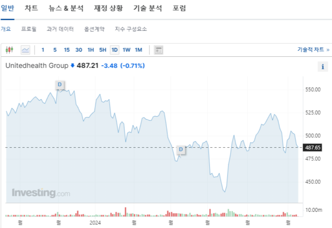 유나이티드헬스는 미국 최대의 건강 보험 제공업체 중 하나로, 의료 서비스와 보험 부문에서 강력한 성장을 이어가고 있습니다. Optum이라는 헬스케어 서비스 부문을 통해 데이터 분석과 기술을 활용한 헬스케어 솔루션을 제공하고 있습니다.