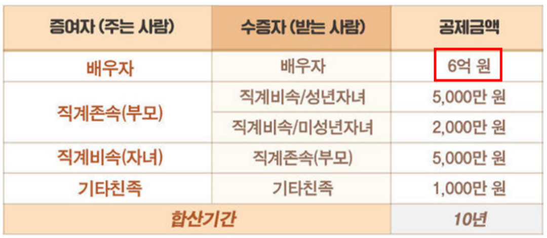 - 직계존속: 5천만 원 공제 (미성년자 2천만 원 공제)