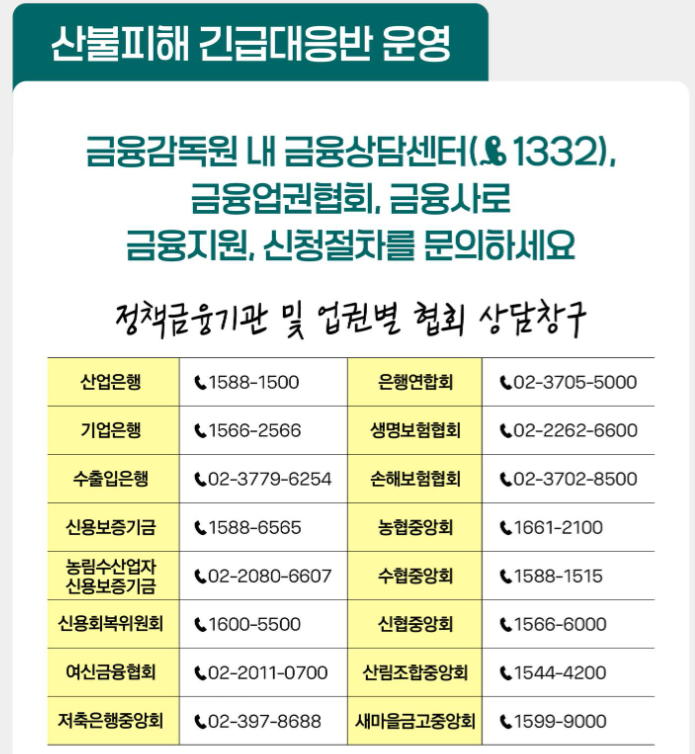금융위원회와 금융감독원을 중심으로 ‘산불피해 긴급대응반’이 구성되어