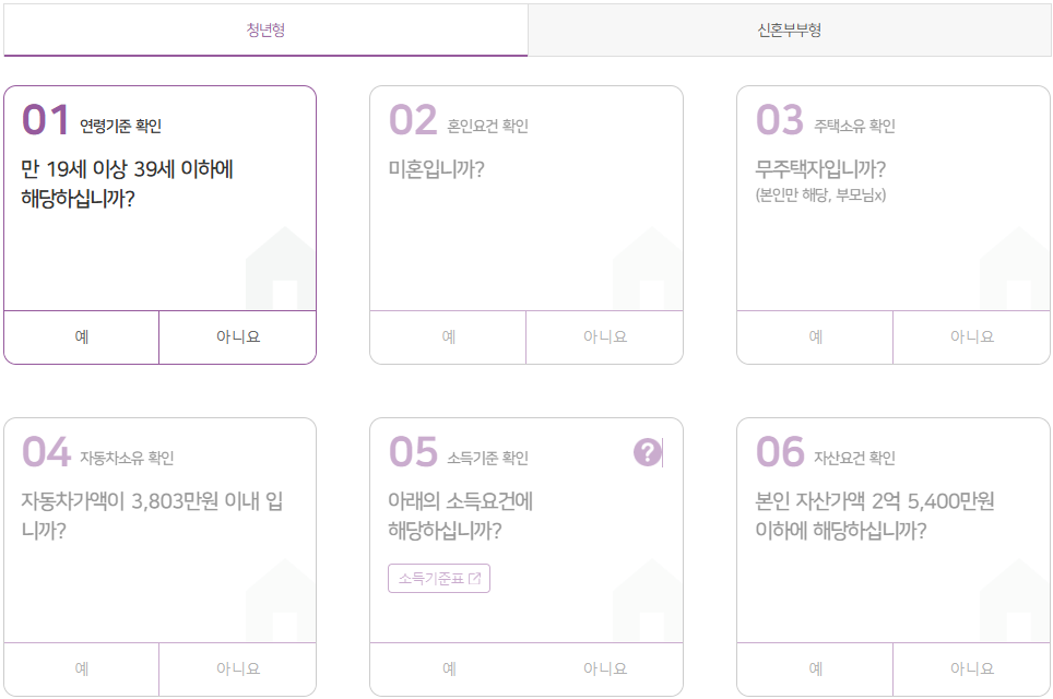 무엇보다 중요한 건 '무주택'이어야 한다는 점! 본인뿐만 아니라 세대 구성원 모두가 주택을 소유하고 있지 않아야 해요. 부모님이 주택을 소유하고 있다면 신청이 어려울 수 있다는 점, 꼭 기억하세요.